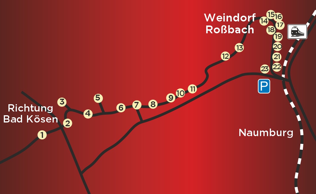 Romantisch, märchenhaft und geheimnisvoll bilden die Naumburger und Roßbacher Weinberge die Kulisse für ein besonderes Weihnachtserlebnis. Inspiriert vom Erfolg der Saale-Weinmeile findet jährlich am 4. Adventswochenende ein von einheimischen Weingütern organisierter Weihnachtsmarkt entlang der Roßbacher und Naumburger Weinberge statt.